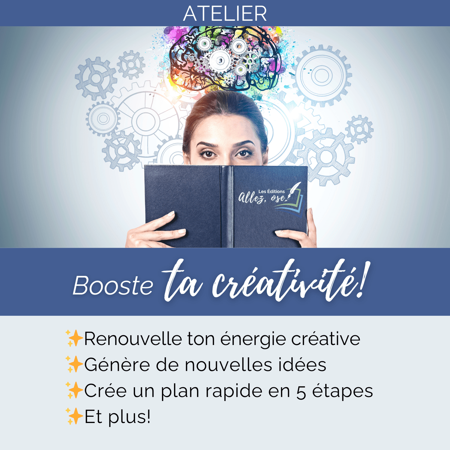 Tu ressortiras de cet atelier avec une énergie renouvelée, des outils concrets et une vision claire pour enrichir ton écriture et t’ouvrir à des idées inédites.